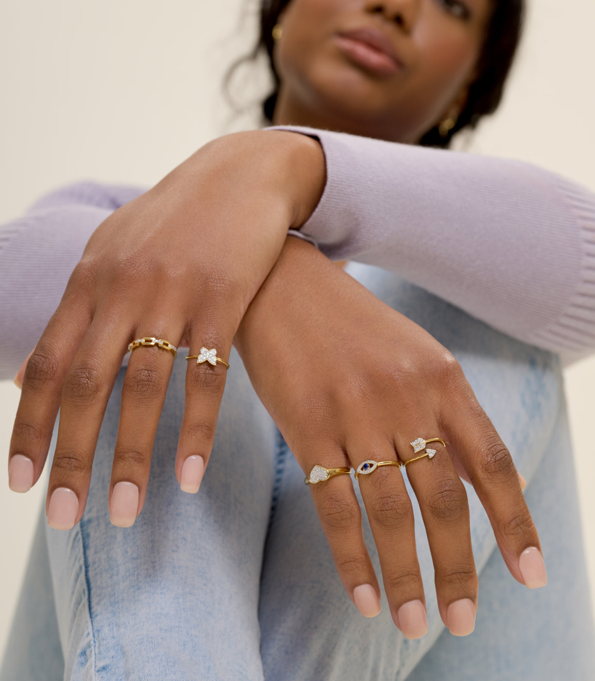 BR0007Y - Lab-Created Diamond Pave Heart Signet Ring
