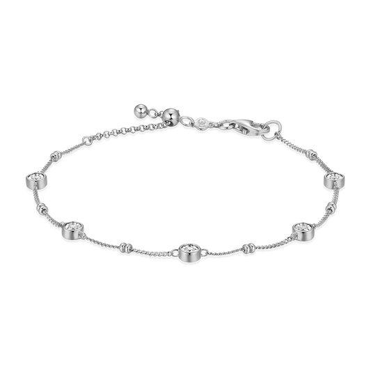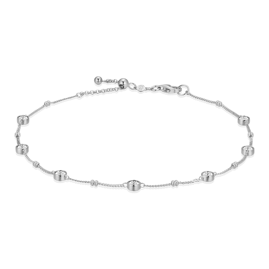 BA0218W - Bezel Station Lab-Created Diamond Beaded Bolo Anklet