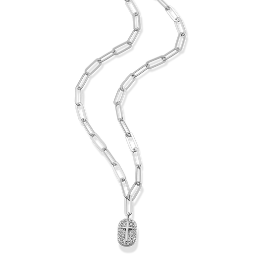 BN0171W - Cross Tag Pendant Lab-Created Diamond Paperclip Necklace