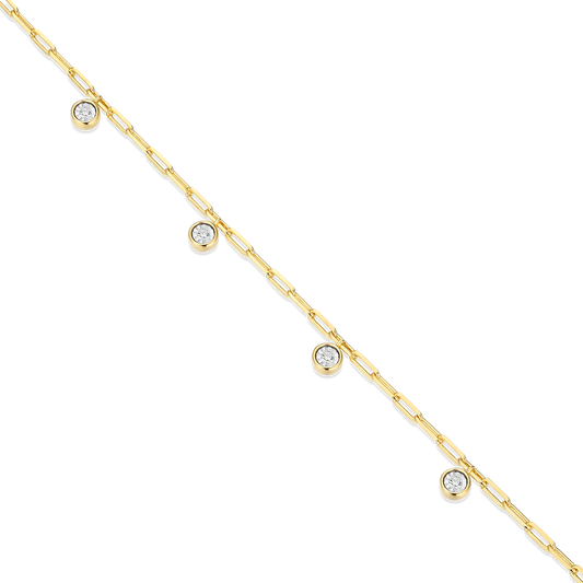 BA0217Y - Dangle Station Lab-Created Diamond Mini Paperclip Anklet in 14K Yellow Gold-Plated Sterling Silver