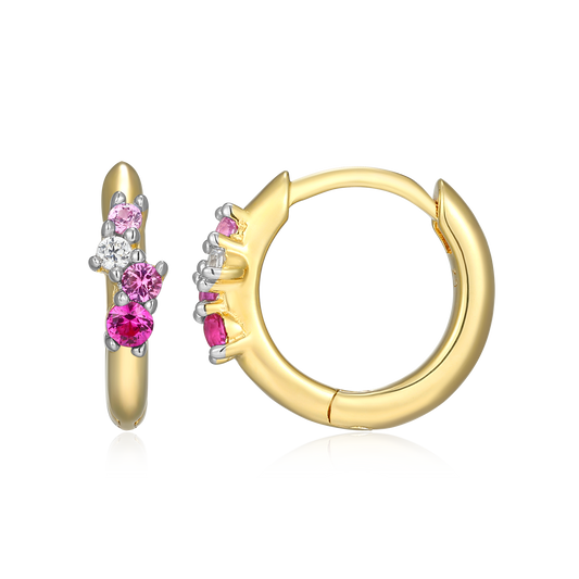 BE0199Y - Scattered Ombre Lab-Created Ruby & Diamond Huggie Earrings