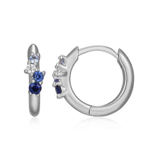BE0200W - Scattered Ombre Lab-Created Sapphire & Diamond Huggie Earrings