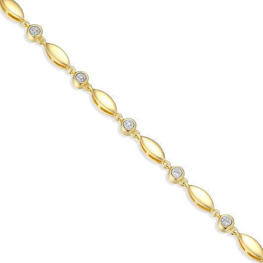BB0236Y - Marquise & Bezel Set Lab-Created Diamond Line Bracelet in 14K Yellow Gold-Plated Sterling Silver