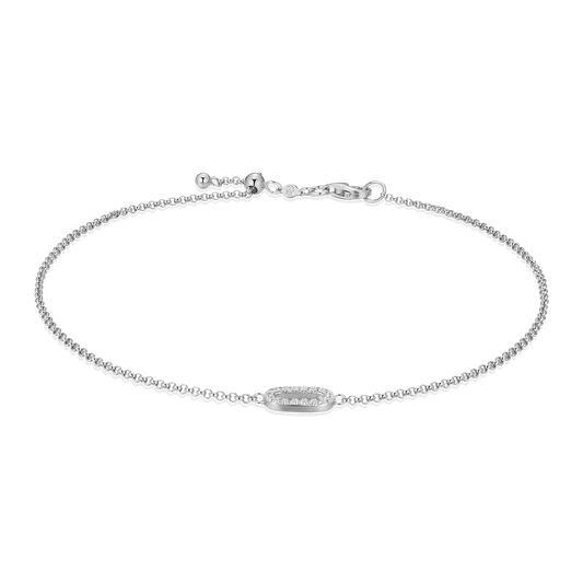 BA0237W - Mini Paperclip Pendant Lab-Created Diamond Bolo Anklet