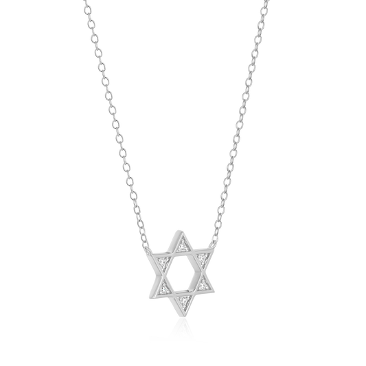 BN0211W - Star of David Lab-Created Diamond Necklace