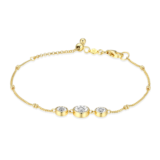 Put a playful twist in every step with our dazzling Bezel Diamond Beaded Anklet! Crafted from shimmering 14K yellow gold-plated sterling silver, this anklet flaunts three sparkling lab-created diamonds nestled between chic abacus beads on a diamond-cut curb chain. With an adjustable bolo slider and lobster clasp, it's the perfect way to sprinkle some shine on your stride.