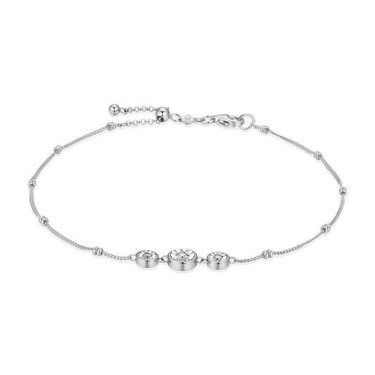 BA0219W - Trio Bezel-Set Lab-Created Diamond Beaded Bolo Anklet