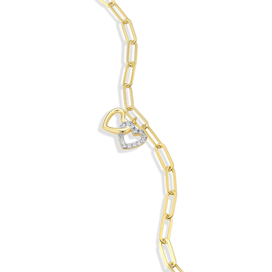 BB0172Y - Twin Heart Pendant Lab-Created Diamond Paperclip Bracelet